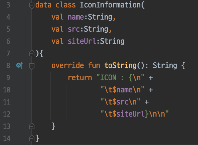 우선 간단히 아이콘의 이름, 이미지 주소, 이미지를 커스텀해서 받는 사이트 이렇게 3가지를 가지는 클래스를 만들어 주도록 하겠습니다.
